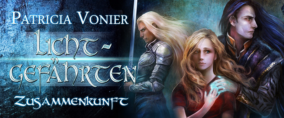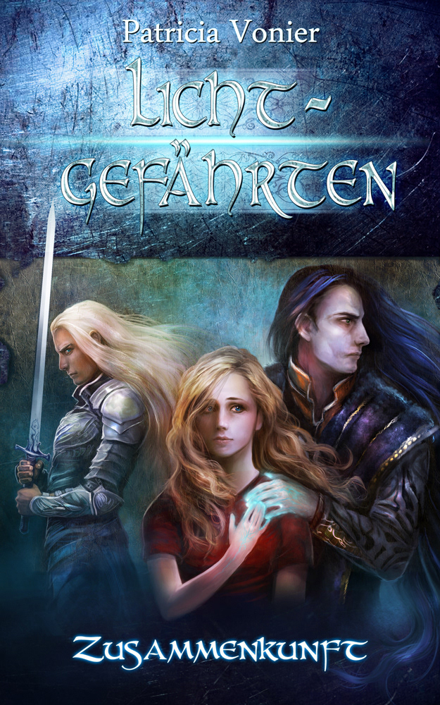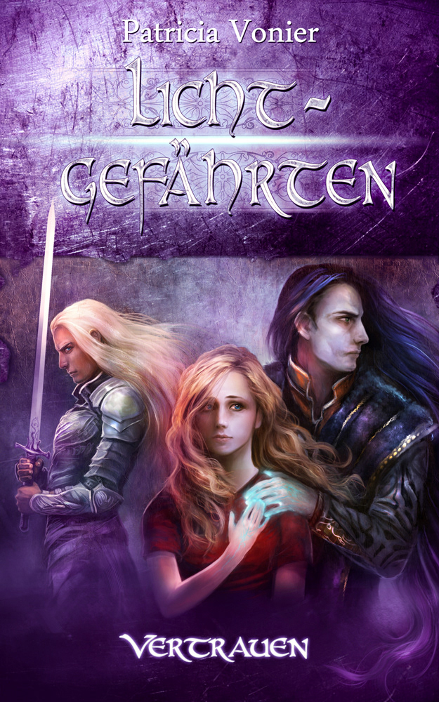 Cover art (3 different colourings) and and web promotion banner for Patricia Vonier's 'Lichtgefährten- saga. Painted in 2014.